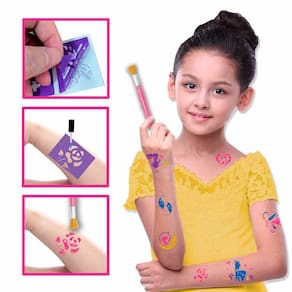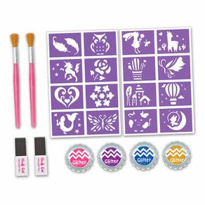 Kit Tatuagem Temporária Infantil - Tattoo Collection - Glitter Plus - DM Toys: as crianças podem incrementar o estilo com a linha Tattoo Collection! Com 16 stencils adesivos de formatos diferentes, 04 potes de glitter, 02 colas e 02 pincéis para fazer lindas tatuagens e arrasar no visual! As tatuagens temporárias Tattoo Collection da DM Toys são lúdicas, coloridas, atóxicas e divertidas. Aprovadas pelo INMETRO, são perfeitas para divertir a criançada e mexer com a imaginação. Detalhes: • Um conjunto para criar tatuagens coloridas temporárias • O produto é totalmente seguro para a pele • As tatuagens são facilmente laváveis com água e sabão • 02 pincéis • 02 colas para glitter • 04 potes de glitter • 16 stencils adesivos de formatos diferentes Instruções de como brincar? 1) Destaque o stencil da carte 2) Cole o stencil no local que desejar fazer a tatuagem e aplique a cola no espaço. Retire o stencial após 1 minuto 3) Aplique o glitter por cima da cola com a ajuda do pincel. Retire o stencil e remova o excesso de glitter com o pincel 4) Para retirar a tatuagem da pele lave com água e sabão Informações: • Produto: Kit Glitter Plus Tattoo Collection • Marca: DM Toys • Coleção: Tattoo Collection • Tipo: Tatuagem Adesiva para Crianças • Categoria: Beleza e Moda Infantil • Subcategoria: Tatuagens Infantis • Conteúdo: - 02 pincéis - 02 colas para glitter - 04 potes de glitter - 16 stencils adesivos de formatos diferentes • Recomendação: para crianças a partir de 05 anos de idade Especificações: • Referência: DMT6574 • Código de Barras: 7899205965749 • Embalagem (C x A x L): 21 cm x 20 x 03 cm • Embalagem (Peso): 0.121 kg • Material / Composição: - Stencil adesivo: PVC - Glitter: PET, PU e corantes - Cola: Água, PVP, estireno, conservantes e emulsificantes • Registro: 003 965/2023 • Certificado: Órgãos Autorizados - OCP´S (Organismos de Certificação de Produtos) Aviso: • As imagens são meramente ilustrativas • Os pesos, tamanhos e medidas são aproximados • As cores e estampas dos produtos podem ter variações • As informações são de responsabilidade do fabricante ou fornecedor Ean: 7899205965749