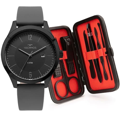 Kit Technos Masculino Steel Preto - 2115mou/k2p 2115mou/k2p Relógio Technos masculino com caixa em aço polido e pulseira confortável de couro com cobertura emborrachada, que ajusta perfeitamente ao seu pulso. Um modelo esportivo casual para todos os momentos. Banho - Preto Tipo - Analógico Cor da Caixa - Preto Material da Pulseira - Silicone Formato - Redondo Cor do Mostrador - Preto Garantia - 12 meses Cor da Pulseira - Cinza Largura da Caixa (cm) - 4,3 Resistência à Água - 5 ATM meli_title - Kit Technos Masculino Steel Preto - 2115MOU/K2P Modelo_ML - Kit Technos Masculino Steel Preto - 2115MOU/K2P Cor - Preto Tamanho - Grande Gênero - Masculino