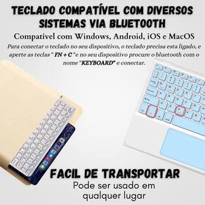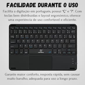 Kit teclado com touchpad para tablet lenovo p12 12.7 tb371fc Cor: preto Imagine a liberdade de trabalhar por até 40 horas ininterruptas, com apenas uma recarga de 1 hora e meia com o k-690, isso é possível. Seu design recarregável via entrada tipo c assegura que você esteja sempre pronto para a ação. Facilitando cada toque em português, o k-690 é equipado com as essenciais teclas 'ç' e '', tornando a digitação uma experiência fluida e eficiente. Seu layout ergonômico e teclas bem distribuídas garantem conforto e precisão em cada movimento. Para conectar-se, basta ligar o teclado e pressionar as teclas fn + c, então procure pelo bluetooth com o nome keyboard em seu dispositivo e conecte-se instantaneamente. Compatível com windows, android, ios e macos, o k-690 é o parceiro perfeito para todas as suas necessidades digitais, onde quer que você esteja. Leve, com um alcance de 10 metros e transmissão sem fio, o k-690 é fácil de transportar e pronto para te acompanhar em qualquer aventura digital. Seu design ergonômico e teclas silenciosas tornam-no a escolha ideal para uso prolongado, seja no escritório, em casa ou em viagens. ------------------ Atenção ------------------ Teclado compatível com diversos sistemas via bluetooth Para conectar o teclado no seu dispositivo, o teclado precisa estar ligado, e aperte as teclas '' fn + c ''e no seu dispositivo procure o bluetooth com o nome ''keyboard'' e conectar. ------------------ ------------------ Qual é a distância operacional do teclado R: o teclado opera a uma distância de até 10 metros, proporcionando liberdade sem fio para uma experiência de digitação flexível. Quanto tempo leva para carregar a bateria R: o tempo de carregamento do teclado é de 1 hora e meia, garantindo recargas rápidas para manter você produtivo. O teclado k-690 possui teclas especiais ou funções adicionais Sim, suas teclas incluem os caracteres especiais 'ç' e '', tornando-o ideal para usuários que necessitam digitar em português. Além disso, o trackpad integrado facilita a navegação e o trabalho sem o uso de um mouse externo. Quais dispositivos são compatíveis com o teclado R: é compatível com dispositivos bluetooth, incluindo smartphones, tablets e outros dispositivos habilitados para bluetooth, desde windows, android e ios ------------------ Especificações ------------------ Alcance de 10 metros. Recarregável via entrada tipo c. Transmissão sem fio. Design ergonômico. Teclas silenciosas. Horas de trabalho: 40 horas. Tempo de recarga: 1,5 horas. Compatível com windows, android, ios e macos. Peso: 283g. ------------------ Conteúdo ------------------ 1x teclado com touchpad Anúncio referente a teclado Acessórios que ambientam as fotos não inclusos. ------------------ Apresentação: ------------------ - qualidade garantida. - atendimento qualificado. - enviamos para todo o brasil. - compra garantida. - despachamos em até 1 dia útil após confirmação do pagamento Garantimos a devolução por arrependimento em até 7 dias, após o recebimento e de 15 dias contra defeitos de fabricação. Homologação Anatel: 079902113999