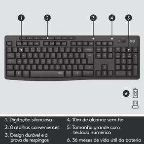 Kit Teclado E Mouse Sem Fio Logitech Silent Mk295 Combo Teclado e Mouse sem fio Logitech MK295 Mantenha o foco e faça mais com o Logitech MK295 Silent - um combo de teclado e mouse projetado para eliminar o excesso de ruído para você e as pessoas ao seu redor. Bem-vindo a uma nova experiência de teclado e mouse virtualmente sem ruído. O combo usa a nova tecnologia SilentTouch para remover 90% dos sons das teclas e cliques enquanto mantém a sensação familiar de digitação e clique. Chega de interrupções e atrasos graças a uma conexão sem fio confiável de 2,4 GHz com alcance de até 10 metros de distância. Deixa sua mesa livre dos fios com um receptor USB - tão pequeno que pode ficar no seu computador. O teclado possui padrão brasileiro ABNT2, além de um design resistente a derramamentos, teclas duráveis e apoios resistentes para ajuste de altura que adicionam uma camada extra de utilidade e conforto. Características: - Marca: Logitech - Modelo: 920-009793 Especificações: - Tecnologia SilentTouch para digitação e cliques silenciosos com 90%* menos ruído. - Teclado com padrão brasileiro ABNT2 e conexão sem fio de 2,4 GHz. - Teclado numérico completo, 8 botões de atalho e botões dedicados para reproduzir/pausar, volume, mudo e até mesmo seu e-mail. - Design à prova de derramamento***, teclas duráveis. - Compatível com Windows e Chrome OS Requisitos do sistema: - Windows 10, 11 ou superior - Chrome OS Conteúdo da embalagem: - Teclado - Mouse Ean: 097855161062