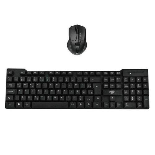 Kit Teclado e Mouse Sem Fio Wireless Especificações do Teclado: Com ajuste de altura reclinável Compatível com o sistema Windows Alimentação: 1 pilha AA (Não inclusa) Confiabilidade das teclas: 10 milhões Cor: Preto Design Borderless Interface: adaptador mini USB Medidas do produto (CxLxA): 420x117x20mm Padrão ABNT2 Plug and Play Especificações do Mouse: Alimentação: 2 pilhas AAA (Não inclusas) Compatível com o sistema Windows Cor: Preto Distância efetiva: 10M Interface: Sem fio Medidas do produto (CxLxA): 100x165x33mm Plug and Play Quantidade de botões: 3 Garantia De 90 Dias