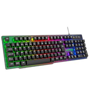 TECLADO GAMER VIPER PRO NAJA Design - Iluminação: Rainbow com 3 Modos - Teclas Multimídia: 10 Teclas Multimídia - Layout: Full Size - Construção: Plástico Resistente a água e Aço - Cabo: 1,4 M - Dimensões: 437x128x30mm Conteúdo da embalagem: teclado, mouse, headset e mousepad Naja