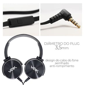 Fone • Marca: Voik • Modelo: MDR-XB450AP • Cor: Preto • Comprimento do cabo: 1 Metro • Fone P2 • Estilo de uso: Over-ear • Extra Bass • Tipo de fone: Com fio • Dobrável: Não • Peso do produto: 0,130 kg