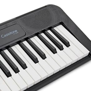 A conectividade de aplicativos torna a prática divertida aplicativo chordana play: visualize as 50 músicas de demonstração do aplicativo ou arquivos midi baixados no chordana play ou na tela de partitura para tocar suas músicas favoritas quando e onde desejar. Toque músicas sem precisar de partitura, pressionando as teclas no ritmo em que as barras são exibidas na tela. Monitore seus pontos no recurso de pontuação do app para tornar seu aprendizado divertido e observe suas habilidades evoluírem. Método de conexão o método de conexão pode ser alterado de acordo com o modelo do dispositivo inteligente. O cabo usb e o adaptador vendidos separadamente são necessários para conectar um dispositivo inteligente ao ct-s300. Estojo exclusivo com design rolltop cheio de estilo o estojo flexível exclusivo tem o tamanho ideal para a série ct-s e o lk-s250, e o design rolltop oferece mais praticidade e estilo. Coloque seu teclado nas costas como uma mochila e leve-o onde quiser. Também acomoda estandes de partituras e adaptadores ca. Teclado: 61 teclas com tamanho padrão resposta ao toque: 2 níveis de sensibilidade, desligado polifonia máxima: 48 timbres: tons integrados: 400 efeitos digitais: reverberação: 1 a 10, desativada metrônomo: batidas por medida: 0 a 16 / intervalo de tempo: 20 a 255 banco de músicas: músicas integradas: 60 / função de divisão: mão esquerda, mão direita ou ambas acompanhamento automático: ritmos integrados: 77 modo dance music: padrões integrados: 50 / voz de dance music: 12 outras funções: transposição: 1 oitava -12 a +12 semitons / afinação: a4 = 415,5 a 465,9 hz padrão inicial: 440 hz / toque predefinido: 77 / botão estabilizar tela lcd contraste ajustável / minha configuração: 1 função app: chordana play midi: 16 multitimbres recebidos, gm nível 1 padrão roda de altura de tons: 0 a 12 semitons terminais de entrada/saída: conector fone/saída: miniconectores estéreo 3,5 mm / conector para entrada de áudio: miniconectores estéreo 3,5 mm / porta usb: micro b / conectores do pedal: entrada padrão 6,3 mm estabilização de pedal, sostenuto, soft, início/parada tomada: 9,5v cc alimentação: alimentação de duas vias: 6 pilhas alcalinas aa ou pilhas de níquel-hidreto metálico recarregáveis aa, operação contínua: aproximadamente 19 horas pilhas alcalinas , aproximadamente 15 horas pilhas de níquel-hidreto metálico recarregáveis , a autonomia de bateria real pode ser menor dependendo do tipo da bateria, do estilo da execução ou do ambiente de operação; adaptador ca ad-e95100l padrão jeita, com plug de polaridade unificado , desligamento automático depois de 30 minutos pode ser desativado . Valores medidos usando pilhas eneloop. Eneloop é uma marca comercial da panasonic corporation. Alto-falantes: 2 x ovais 13cm x 6cm saída: 2,5w + 2,5w consumo de energia: 5,5 w dimensões: 93 l x 25,6 p x 7,3 a cm peso: cerca de 3,3 kg sem as pilhas acessórios incluídos: suporte para partitura acompanha a fonte de alimentação estante x bag