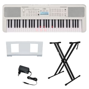 Teclado de 61 teclas, sensível ao toque, especialmente equipado com teclas de iluminação e projetado como um modelo de teclado portátil de entrada para os músicos principiantes. Com este elegante e abrangente instrumento, você pode praticar, tocar e se apresentar com várias funções de lição e sons de instrumentos autênticos.Acompanha suporte em X para Teclado New York X2.Especificações- Marca: Yamaha- Modelo: EZ-310- Cor: ACP-2 Branco- Display: LCD- Quantidade de Teclas: 61- Quantidade de oitavas: 5- Polifonia Max: 48- Vozes: 650- Estilos predefinidos: 260- Compatibilidade: GM, XGlite- Efeitos: DSP, REV-X, Chorus, EQ Master, Harmonia, Dual, Split, Arpejo- Conectividade: DC 12V, Fone de Ouvido, Pedal Sustain, AUX IN, USB TO HOST- Amplificadores: 2 x 2,5W- Falantes: 2 x 12 cm- Fonte de Energia: Fonte AC (PA-130, ou equivalente recomendado pela Yamaha) ou pilha (seis pilhas “AA” alcalinas (LR6), manganês (R6) ou Ni-MH recarregáveis (HR6)- Consumo: 5W (com a fonte PA-130)- Bivolt- Dimensões: 94,1 x 10,5 x 31,7 cm- Peso: 4,6 kgEspecificações suporte- Marca: New York- Tipo: X- Modelo: X2- Cor: Preta- Ferragem: Dupla Reforçada- Utilização: Teclados Musicais, Pianos Digitais- Altura Máxima: 96 cm- Altura Mínima: 32 cm- Largura Máxima: 94 cm- Largura Mínima 26,5 cm- Peso Aprox.: 2,200 kgConteúdo da Embalagem- 01 Teclado EZ-310 Preto Yamaha- 01 Estante para Partitura- 01 Fonte AC- Manual do Proprietário- 01 Suporte em X- Dimensões da Embalagem (AxLxP): 16 x 49 x 107 cm*imagens meramente ilustrativas