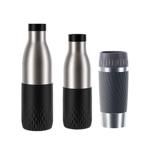 Conheça o Kit Tefal, a combinação perfeita para quem busca praticidade, estilo e funcionalidade no dia a dia. Este kit inclui duas Garrafas Térmicas Tefal Pretas, uma de 500ml e outra de 700ml, ambas com isolamento eficiente que mantém suas bebidas quentinhas ou geladas por mais tempo. Além disso, acompanha um Copo Térmico com Tampa Tefal na cor Cinza, ideal para facilitar o consumo em qualquer lugar. Com design moderno, resistência e alta performance, esse kit é perfeito para levar suas bebidas favoritas ao trabalho, na academia, em passeios ou em qualquer momento que você desejar.