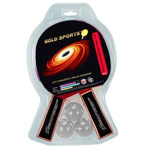 O Kit Tênis de Mesa Gold Sports Advanced - 2 Raquetes e 3 Bolas, raquetes borracha com pino e esponja laranja e outro lado com borracha preta lisa, e cabo anatomico classico com 5 laminas de madeiras ecologicas e bolas 40mm é um kit ideal para jogadores avançados.