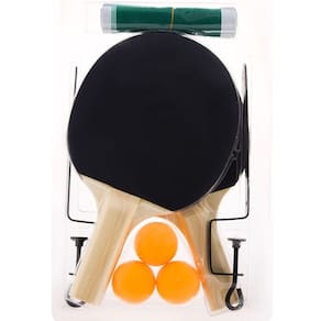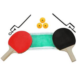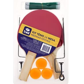 O kit suporte para tênis de mesa com 2 raquetes e bolas BEL é ideal para a iniciação ao tênis de mesa ou ping-pong mais popularmente conhecido. Com este kit completo você conseguirá dominar os primeiros efeitos do esporte!\nInformações:\n· Raquetes fabricadas com madeira Álamo e revestimento em EVA, 2 mm - liso · Material suave que proporciona um melhor controle da bolinha · Acompanha 3 bolinhas 40 mm · Para mesas com espessura de Até: 38 mm\nMedidas: · Rede (CxA): 1,50 m x 12 cm · Altura do suporte: 14,2 cm - 19 cm · Raquete (CxLxA): 25,5 cm x 15 cm x 1 cm Especificações Técnicas Acompanha: 02 Raquetes, 03 Bolas, 01 Rede, 02 Suportes