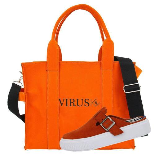 Kit Tenis Slip On Feminino Camurça Calce Facil Com Bolsa Lona Tote Bag Alça Fixa e Transversal Removivel - 35 - Laranja