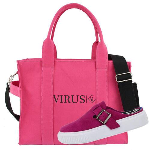 Kit Tenis Slip On Feminino Camurça Calce Facil Com Bolsa Lona Tote Bag Alça Fixa e Transversal Removivel - 34 - Rosa
