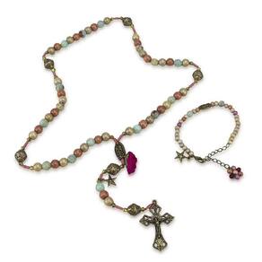 Kit Terço e Pulseira Nossa Senhora de Guadalupe Madeira 8 e 4 mm Terço Nossa Senhora de Guadalupe Madeira 8mm RW2MMQE9Q Material: Contas em madeira 8 mm contas em pedra natural 8 mm metais em ouro velho Strass Cordão Flor de papel Pulseira Nossa Senhora de Guadalupe Madeira 4 mm BN4G28CWH Material: contas em madeira 4 mm Contas em pedra natural 6 mm Metais em ouro velho Strass Nylon Regulável Aprox. 21 cm de comprimento Marca: Amém Decoração Religiosa