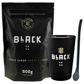 Kit Tereré Erva Menta E Limão + Copo Preto + Bomba Preta Black Erva Erva Mate Tereré Black Erva 500g Sabor Menta E Limão O Tereré possui efeito diurético, que colabora no processo de redução da gordura corporal. A bebida estimula o aumento o gasto energético dos consumidores, por proporcionar maior força muscular e, consequentemente, melhor desempenho nos treinos. Se você gosta de refrescância e sabor inconparável, não pode deixar de provar esse sabor. A erva menta e limão combina o sabor do limão com a deliciosa sensação da hortelã. Pacote com 500g com sistema zip lock para maior conservação do produto. Modo de Preparo: - Coloque 3/4 de Black Erva na guampa, cuia ou copo. - Incline e acomode a Black Erva sobre um lado da guampa, cuia ou copo. Deixe a bomba no local adequado. - Tome com água gelada a gosto e saboreie sua Black Erva. Consumir com água gelada para melhor aproveito do sabor. ESPECIFICAÇÕES TÉCNICAS: - Marca: Black Erva - Ilexx paraguariensis Erva Mate , Aroma Artificial de Menta, Aroma Artificial de Limão - Padronização Erva Mate Folha 35% mínimo, outras partes do ramo 65% máximo - Não contém glúten Copo Cuia Para Terere Black Erva Preto Fosco 350ml Para você que quer apreciar uma deliciosa erva mate, sozinho ou com seus amigos, com essa cuia você vai fazer isso no maior estilo A cuia possui a aparência Preta com a estampa da marca Black Erva. Possui a superfície lisa e fácil de limpar. ESPECIFICAÇÕES TÉCNICAS: - Produto com ótimo acabamento - Resistente e com alta durabilidade - Material: Acrílico - Capacidade: 350ml - Altura: 11,5cm - Diâmetro Boca: 8cm - Peso: 60g Bomba Para Tereré E Chimarrão Tradicional Black Erva Preto A Black Erva é o novo conceito para terere no Brasil, com produtos de alta qualidade Essa bomba tradicional e prática possui grande durabilidade e é extremamente bonita. Pode ser Utilizado para o consumo de Erva Mate aonde você estiver: seja entre amigos, no trabalho ou em casa. ESPECIFICAÇÕES TÉCNICAS: - Material de alta qualidade e pintura epóxi um revestimento de alta resistência - É de fácil utilização e limpeza, não acumula cheiro ou resíduos - Anti entupimento - Medidas: 19 x 2 cm - Cor: Preto ITENS INCLUSOS: - 1x Erva Mate Tereré Black Erva 500g Sabor Menta E Limão - 1x Copo Cuia Para Terere Black Erva Preto Fosco 350ml - 1x Bomba Para Tereré E Chimarrão Tradicional Black Erva Preto