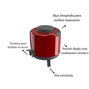 O Botijão é um produto com parede dupla e isolamento térmico em Poliuretano. Fabricado com material de alta resistência, livre de BPA, superfície lisa e fácil limpeza. O Produto apresenta excelente design com sua alça integrada, facilitando o manuseio e o transporte, além dos pés retráteis o que torna o produto fácil de servir em qualquer ambiente. Facilidade na limpeza no interior da garrafa, além de permitir a entrada de pedras de gelo.