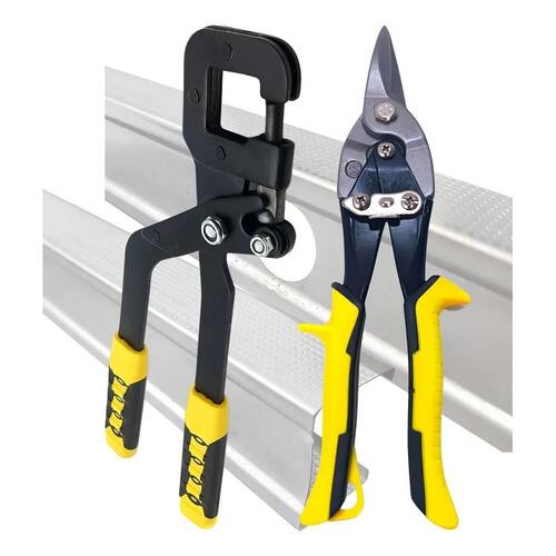 Kit Tesoura Corte Chapa Aviação + Alicate Puncionador Amare