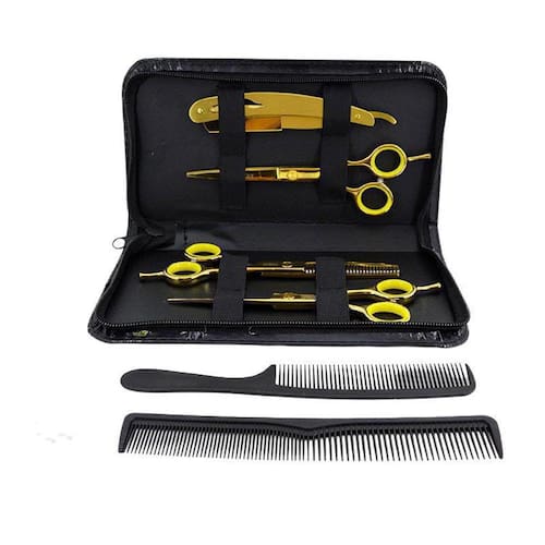 Para realizar um bom corte de cabelo, você precisa ter um equipamento apropriado que o ajude a fazer o trabalho direito.Tesouras de corte de cabelo profissionais são uma obrigação - elas fazem toda a diferença no acabamento de um bom corte.O kit contém:01 - Tesoura Fio Navalha 6.0 Dourada01 - Tesoura Desfiadeira 6.0 Dourada01 - Tesoura Fio Laser 6.0 Dourada01 - Navalha De Barbear Dourada02 - Pentes01 - Estojo