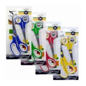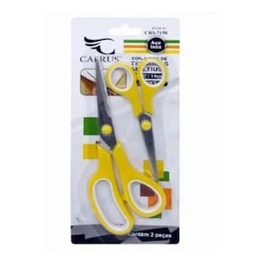 Descrição:- Aço Inox- 1 Tesoura 14cm- 1 Tesoura 19cm- Contém 2 peças- Cores: Amarelo, Verde, Vermelho e Azul.Cores enviada conforme disponibilidade em estoque