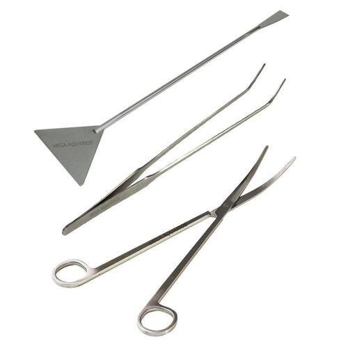 Kit de ferramentas para aquário plantado e terrários, tesoura + pinça ponta curva + espátula para poda e manutenção de plantas aquáticas e substratosO kit consiste em ferramentas confeccionadas em aço de alta qualidade e desenhada para uma pegada firma e confortável, é um item indispensável para a manutenção de aquários plantados.Características:Fabricado em aço de alta qualidadeNão enferrujaResistente Pegada ergonômicaCorte preciso Ponta fina para facilitar o trabalho em lugares de difícil acesso.Especificações técnicas tesoura curva:Marca: Mega AquáriosModelo: Tesoura curva 25cmMaterial: Aço inoxidável Tamanho: 25mEspessura: 5mmTamanho da ponta: 3mm larguraApoio para os dedos: 2cm diâmetroPeso: 72g.Especificações técnicas pinça curva:Marca: Mega AquáriosModelo: Pinça curva 26cmMaterial: Aço inoxidável Tamanho: 26cmEspessura: 2mmTamanho da ponta: 2mm larguraPeso: 52g.Especificações técnicas espátula:Marca: Mega AquáriosModelo: Espátula 30cmMaterial: Aço inoxidável Tamanho: 30mEspessura: 5mmPeso: 52g.Manutenção:Após o uso, lave bem as ferramentas em água correnteNão utilize produtos químicos e abrasivosSeque-a bem antes de guardar.Obrigado pela visita e boas comprasATENÇÃONossas imagens e textos são registrados e com direito de uso autoral controlado e reservado a essa loja e as lojas parceiras devidamente autorizadas em contrato.