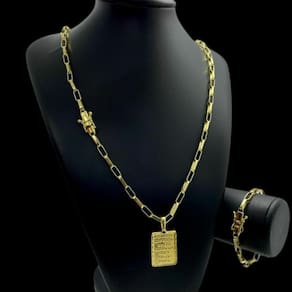 Kit Tijolinho 6mm + Pai Nosso Banhado a Ouro Detalhes do Produto: Material: ligas metálicas de alta qualidade, especialmente tratadas para fixação e absorção do ouro, com acabamento em verniz protetor. Aparência: visual idêntico ao ouro maciço. Produção: artesanal, com atenção meticulosa aos detalhes. Banho: 10 camadas espessas de ouro 18k, finalizadas com verniz antialérgico . Elos: soldados varia conforme o modelo . Pedras: zircônias brilhantes cravejadas quando aplicável . Tamanhos Disponíveis: Cordões Masculinos: 70cm padrão e 60cm sob consulta/Pedido Via Chat . Cordões Femininos: 50cm padrão e 45cm sob consulta/Pedido Via Chat . Pulseiras: 21cm padrão ; tamanhos de 18cm a 23cm sob consulta/Pedido Via Chat. Pingentes: conforme imagens; consulte para mais detalhes via chat. Espessuras Recomendadas para Cordões / Pingentes: P: 1mm a 4mm M: 4mm a 8mm G: 6mm a 13mm Gg: 12mm a 18mm Incluso na Compra: Saquinho de organza para armazenamento seguro. Caixa elegante, perfeita para presente. Cupom de desconto para a próxima compra. Flyer com outros produtos da coleção. Carta de agradecimento personalizada. Adesivo da marca ToJoia18k. Informações Adicionais: : 6 meses termos acompanham o produto . Devolução: 7 dias para devolução sem questionamentos. Envio: despacho em até 24 horas úteis após confirmação do pagamento. Cuidados com a Peça: Evite contato com produtos químicos; aguarde o perfume secar antes de usar. Evite contato com shampoo, condicionadores e suor excessivo. Armazene em local seco, preferencialmente no saquinho de organza fornecido. Uso no mar e piscina é permitido; lave com água corrente e sabão neutro após. Por que Escolher a ToJoia18k Semi-joias luxuosas que combinam estilo, qualidade e sofisticação. Banho espesso de ouro 18k, garantindo brilho duradouro e acabamento impecável. Design exclusivo e produção artesanal, perfeitos para qualquer ocasião. Materiais premium que asseguram durabilidade. Ao escolher uma semi-joia ToJoia18k, você investe em qualidade, elegância e uma experiência única. Aguardamos sua compra Observação: pode ocorrer variação no fecho raramente . Imagens reais, sem edição. Qualquer dúvida, estamos à disposição para esclarecimentos. Marca: Não Informado