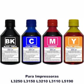 Kit Com 4 Garrafas de 250ml de Tinta Premium Compatível com Refil 544 para Impressoras Epson L3150 L3250 L3110 L3210 L5190.