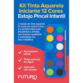 Kit Tinta Aquarela 12 Cores com Estojo + Pincel - Futuro Escolar
