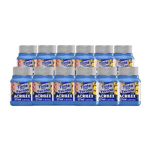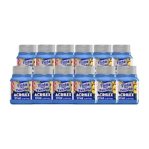 A Tinta para Tecido Fosca da marca Acrilex é indicada para pinturas artesanais em tecidos de algodão sem goma não sintéticos e também para tingimento de massa de biscuit mediante teste prévio. Sua principal característica é obter acabamento fosco, super resistente à lavagens, excelente cobertura, fixação a frio e maior rendimento. Pronta para uso, pode ser aplicada com pincel, esponja ou carimbo. Para diluição, use o Diluente para Tinta Tecido que dilui e retarda a secagem, para técnicas de matizados e sombreados, mantendo a resistência a lavagens. Produto solúvel em água, não tóxico. Contém 12 unidades com 37 ml cada . Marca: Acrilex - Artistico