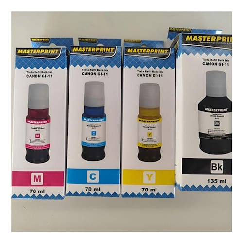 Kit Tinta Gi-11 Refil 4 Cores Canon G2160 G3160 Masterprint Kit 4 Refil de Tinta GI-11 para Impressora Canon G2160 G3160 MasterprintAlta Qualidade Produz impressões nítidas e duradouras.Compatibilidade Garantida Desenvolvido para uso nos modelos Canon GI-11.Uso Diário Perfeito para documentos, relatórios, fotos e muito mais (não indicado para sublimação).Conteudo:1x Frasco Black 135ml Corante1x Frasco Ciano 70ml Corante1x Frasco Yellow 70ml Corante1x Frasco Magenta 70ml CoranteGaranta agora o Kit 4 Refil de Tinta GI-11 da JFL SUPRIMENTOS e tenha sempre tinta de qualidade à sua disposição!Garantia do vendedor: 90 dias____CLIENTE SATISFEITO TINTAS DE OTIMA QUALIDADE | | Não perca essa oportunidade o momento de transformar sua experiência é agora ___________Sobre o seu pedido: Prezamos pela transparência! Informamos que as fotos do anúncio são meramente ilustrativas. Você poderá receber o item da marca Masprint ou Kora. Ambas possuem o mesmo padrão de excelência e atendem a todos os requisitos técnicos descritos.-- Ean: 7891474842387