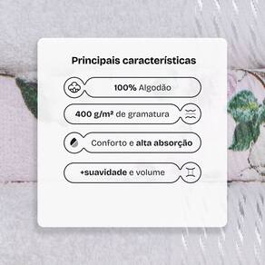 Caracteristicas: - Tecido: 100% algodão - Gramatura: 400g/m2 - Fios retorcidos - Toque Macio - Boa absorção - Estampas coloridas e Lisas - Gramatura das toalhas: 400g/m2
