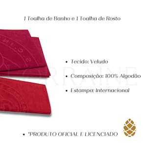 Produzida através de licenciamento oficial autorizado pelo time. O desenho exalta o Brasão, que ajuda a motivar e cativar a torcida. Fabricada em 100% algodão, possui o acabamento aveludado, com felpa de alto poder de absorção! Produtos exclusivo e limitado, escolha seu time do coração e aproveite!