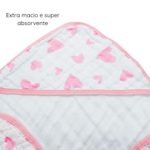 O que vem no Kit? 1 Toalha de Banho Soft Rosa – Estampa Variada Medida: 70x70cm Tecido: 100% algodão Toque leve e absorvente Lavável na máquina 3 Paninhos de Boca Rosa – Estampas Variadas Medida: 32x32cm Tecido: 100% algodão com acabamento reforçado Suaves e práticos para mamadas, arrotos e passeios