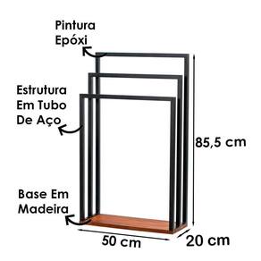 Kit Toalheiro De Piso E Papeleira Lovell Metal Base Em Madeira DHom, conta com estrutura em aço maciço, pintura eletrostática (epóxi), base em madeira e acabamento em preto fosco. A papeleira tem uma ótima estabilidade sem tombar no momento de puxar o papel. O porta toalha quadrado triplo é em tubo de aço (2 cm x 2 cm). É perfeito para deixar seu cômodo em ordem e dar aquele toque de sofisticação. Estes móveis chegarão em sua casa separados em 2 volumes.