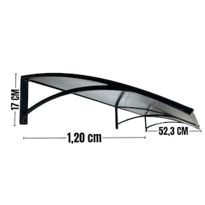 Design Moderno e Durável: Com uma profundidade de 52,5cm e uma largura de 120cm, nosso toldo é construído com policarbonato de alta resistência, oferecendo durabilidade excepcional e proteção contra raios UV.
