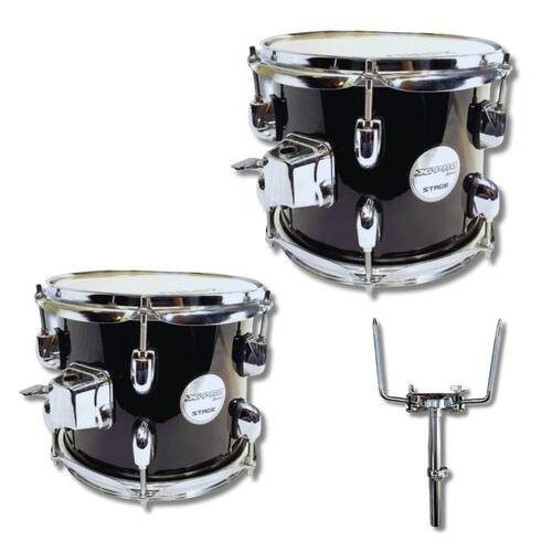 Kit tom 8 e 10 de bateria preto em madeira com caneca cromada x- pro + tom holder joint ball duplo reforçado para tons bateria 15.3 Descrição do tom de 8: