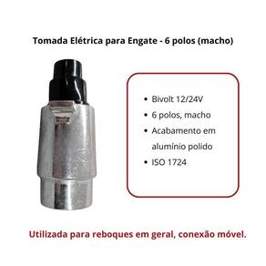 Kit tomada engate carretinha fêmea macho 6 polo metal alumínio A parte que mais sofre em um conjunto de reboque é, sem dúvida, o plug femea e macho. Ele cai no chão, é arrastado, recebe pancadas... Se o seu for de plástico, você já sabe o resultado: trincas e quebras constantes, deixando você na mão com a sinalização. A tomada macho e femea de alumínio dni 8327 dni 8326 é a resposta para esse problema. Projetada para ser um upgrade direto, ela substitui a frágil peça de plástico por um corpo sólido de alumínio polido, garantindo uma durabilidade incomparavelmente maior e um encaixe muito mais firme. - construção robusta em alumínio: enquanto os plugs de plástico ressecam e quebram, o corpo de alumínio deste plug resiste a impactos, quedas e às condições climáticas mais severas. É a tranquilidade de ter uma peça feita para durar. - reposição inteligente macho e femea : este produto é apenas a tomada macho, a parte que fica na ponta do chicote do seu reboque. Ideal para quem precisa substituir apenas a peça que sofreu danos, sem o custo de comprar um kit completo. - padrão nacional de 6 polos: essencial para reboques e carretinhas que utilizam o sistema de 6 vias para a sinalização básica lanterna, freio, setas e terra . Garante a conexão correta com veículos equipados com a tomada fêmea de 6 polos. Característica - marca: dni - código: dni8326-8327 - conteúdo do kit: 1 tomada macho + 1 tomada fêmea ambas de alumínio - número de polos pinos : 6 - material: alumínio polido de alta resistência - tensão de operação: bivolt 12v / 24v - formato: redonda Aplicação: Universal Tempo : 6 meses Itens inclusos: - 1 tomada reboque macho - 1 tomada reboque femea ------------------------------------------------------------------------------ - a ampec autopeças não se responsabiliza pelo mau uso ou instalação indevida do produto, sempre recomendamos que a instalação seja feita por um especializado. - o produto é novo Sim, não trabalhamos com produtos , remoldados ou remanufaturados. -tem disponibilidade do produto Temos disponibilidade de todos nossos produtos enquanto durarem os estoques, favor nos consultar antes da compra. - imagem ilustrativa utilizada para identificação e demonstração de produto. - as marcas e modelos citadas no anúncio, pertencem aos seus respectivos fabricantes, somente mencionadas como referências para o uso correto do produto, conforme artigo 31 da lei: 8078 de 11.09.1990 Não temos qualquer vínculo com estas empresas. Marca: Não Informado Ean: 7794015032363