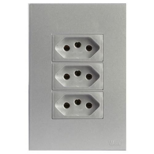 Cj tomada tripla 20a 4x2 - recta prata satin fosco - brs12204-1pr