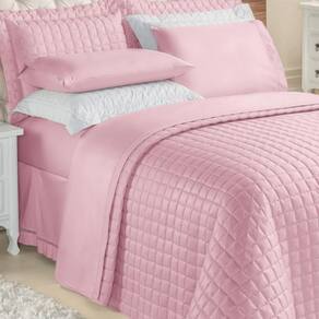 Kit Top Line Cobre Leito King 180 Fios + Jogo De Lençol - 7 Peças Rosê