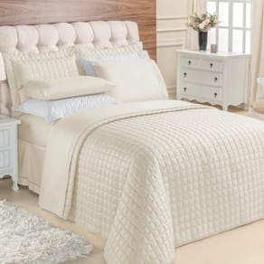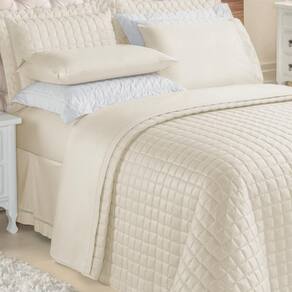 Kit Top Line Cobre Leito Queen 180 Fios + Jogo De Lençol - 7 Peças Marfim