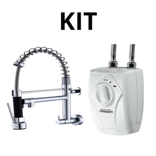 Kit Torneira Monocomando de Parede Cromada Cozinha + Aquecedor Lorenzetti Versátil 127V - ideal para projetos modernos que valorizam eficiência e estética em ambientes residenciais