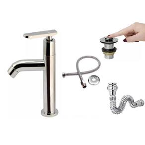 Kit Torneira Slim + Engate Flexível + Válvula Click + Sifão Kit Torneira Slim ABS + Engate Flexível 40 CM + Válvula Click + Sifão Sanfonado/Extensivo Cromado. -- torneira Silm ABS: Fabricado em plástico super-resistente ABS ,leve e cromado, possui alta resistência a riscos e a corrosões, conservando a beleza do produto por muito mais tempo. Deixe o ambiente bonito e elegante, invista neste torneira e tenha um produto de qualidade e designer fantástico, perfeita para pequenos ambientes, essa peça oferece maior praticidade e charme. Seu mecanismo 1/4 voltas oferece controle total no fluxo de água. - Feito em ABS plastico de engenharia com alta resistência e durabilidade . - Mecanismo 1/4 de volta com pastilha cerâmica. - Pressão de água: 02 a 40 M.C.A. -- válvula Click: As Válvulas Click são a mais nova tendência do mercado de decoração e acabamento para o seu banheiro, ideal pra quem procura praticidade e eficiência. Com sua função click, você controla o escoamento da água de maneira simples e prática. Com seu design sofisticado, as válvulas são o produto que vai dar o complemento ideal para o seu banheiro, além de evitar a saída de ODORES e insetos, mantendo seu banheiro limpo. -fabricada em metal cromado de alta resistência. -válvula para lavatórios, cubas e bidês. -fácil instalação / Sem ladrão / Pratico sistema de abertura e fechamento. -- engate Flexível 40 cm: Produto indispensável para a instalação de torneiras, o engate flexível é um equipamento que não pode faltar na cozinha, banheiro, lavanderia da sua casa. Pensando nisso, este excelente modelo é uma ótima escolha para garantir o bom funcionamento de suas torneiras Utilizado para a ligação entre a rede hidráulica e a torneira, é produzido em aço inox, um material de grande resistência e durabilidade que confere alto padrão à peça. Por ser flexível, adapta-se a qualquer tipo de instalação. -- Sifão sanfonado/extensivo adaptável às válvulas de 7/8, 1.1/4 e 1.1/2, com saídas de esgoto DN 38, 40, 48 e 50. - Fácil instalação Dispensa o uso de ferramentas. - Suporta água quente e fria. - Peça única evitando vazamentos. - Diversas situações de entrada. - Fácil de retirar para limpeza.