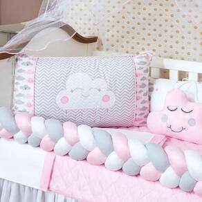 Kit Trança Berço menina 14 peças Nuvem Rosa Capa Impermeável