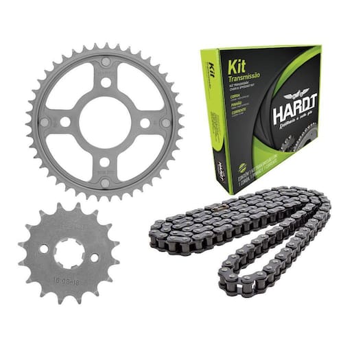 Kit Transmissão Hardt Resistencia a cada Giro Produzidas para atender os mais exigentes consumidores os kits transmissão Hardt prezampela qualidade e se destacam pela sua performance resistência e durabilidade.Reconhecida pelos motociclistas, como um produto de "Qualidade Premium". os kits transmissão Hardt são produzidos em aço 1045, certificado conforme normasrnacionais, SAE . A coroa e o pinhão recebem tratamento térmico por indução, o quegarante melhor defesa contra o desgaste dos dentes e preserva a integridade do núcleo nos impactos. A corrente reforçada, com tratamento especial na cor preta complementa aqualidade do kit transmissão Hardt. Certificada pelo Inmetro os kits Hardt atendem todosos requisitos para atingir ou superar o nível de qualidade das peças . Kit transmissão Hardt Cg150 Titan/Fan Código Produto: 55513 Aplicação: CG 150 TITAN / FAN Marca: HARDT Ano: TODOS Informações técnicas Medidas: 43Z/16Z/118L/428H Coroa 43 dentes: Aço 1045 Certificado INMETRO: BRA18/02395 Pinhão 16 dentes: Aço 1045 Certificado INMETRO: BRA18/02394 Corrente: Aço 1045 Certificado INMETRO: BRA18/02393 Tamanho: 118 Elos Passo: 428 H com retentor: Não Cor: Preta Marca: Não Informado