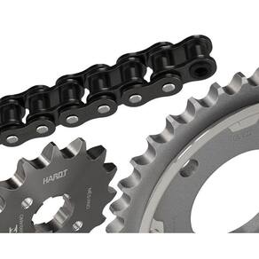 Produzidas para atender os mais exigentes consumidores os kits transmissão Hardt prezam pela qualidade e se destacam pela sua performance resistência e durabilidade. Reconhecida pelos motociclistas, como um produto de “Qualidade Premium”. os kits transmissão Hardt são produzidos em aço 1045, certificado conforme normas internacionais, (SAE). A coroa e o pinhão recebem tratamento térmico por indução, o que garante melhor defesa contra o desgaste dos dentes e preserva a integridade do núcleo nos impactos. A corrente reforçada, com tratamento especial na cor preta complementa a qualidade do kit transmissão Hardt. Certificada pelo Inmetro os kits Hardt atendem todos os requisitos para atingir ou superar o nível de qualidade das peças originais.