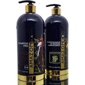 O Shampoo PRO Ph6 AMAZONE NUT Amazonex, promove uma intensa limpeza nos fios, preparando as fibras capilares e o pH para melhor absorção do Condicionador Proteico Amazonex. Modo de uso: Com os fios úmidos aplique o Shampoo PRO Ph6 Amazone Nut Amazonex por toda a extensão e massageie suavemente até formar uma espuma rica e cremosa. Enxágue e aplique novamente se necessário, até que os fios estejam limpos e prontos para seguir o próximo passo. Após esse procedimento seque os fios 100%. E proceder com a aplicação do Condicionador Proteico Hidroscópico. Precauções: Uso externo. Mantenha fora do alcance de crianças. Conservar em local de contato com os olhos enxágue com água Fabricad fresco e ao abrigo da luz e do calor. Em caso em abundância. Não aplicar de o couro cabeludo estiver lesionado ou irritado Havendo irritação suspenda o uso e procure orientação médica. === O Condicionador Proteico Hidroscópico AMAZONE NUT Amazonex tem um alto poder anti oxidante e Anti aging, rico em ômega 3,6 e 9, ainda contém outros nutrientes que rejuvenescem, reconstroem e recuperam a estrutura da fibra de dentro para fora dando nova vida aos cabelos. Modo de uso: Com auxílio de um pente fino, divida os cabelos em 4 partes e aplique o Condicionador Proteico Hidroscopico AMAZONE NUT Amazonex mecha a mecha das raízes as pontas. Deixe agir por 50 minutos. Após a pausa enxágue muito bem com água em abundância até que perceba que não restou nenhum resíduo do creme, em seguida seque 100% alinhando os fios e passe a prancha mecha a mecha, mais na raíz, menos has pontas. Dica: em cabelos finos ou tratados misturar com a Máscara Professional CORTEX BABAÇU Amazonex 1/10 Precauções: Mantenha em local fresco, ao abrigo de luz intensa e calor excessivo e fora do alcance das crianças. Não ingerir. Em caso de contato acidental com os olhos enxaguar abundantemente. Suspenda o uso e procure orientação médica Havendo Marca: Não Informado