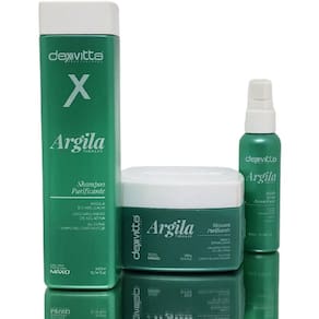 Indicada para todos os tipos de cabelos. As propriedades da argila estabilizada fortalecem as fibras capilares, diminuem a queda, auxiliam no combate a oleosidade e promovem hidratação nos cabelos. Sua fórmula contém uma diversidade de oligoelementos que associados ao crosspolímero de gelatina e ao silicone termo reconstrutor garantem efeito reconstrutor, nutritivo e hidratante aos cabelos. Argila therapy Shampoo purificante 300ml Argila estabilizada Crosspolimero de gelatina Silicone Termo reconstrutor Exclusiva tecnologia max-d O shampoo argila therapy dexvitta foi desenvolvida com exclusiva formulação italiana para todos os tipos de cabelos. As propriedades da argila estabilizada fortalecem as fibras capilares, diminuem a queda, auxiliam no combate a oleosidade e promovem hidratação nos cabelos. Sua fórmula contém uma diversidade de oligoelementos que associados ao crosspolimero de gelatina e ao silicone termo reconstrutor garantem efeito reconstrutor, nutritivo e hidratante aos cabelos. Modo de usar: aplicar sobre os cabelos úmidos e massagear suavemente o couro cabeludo com movimentos circulares. Enxaguar em abundância e repetir a operação. Deixar em pausa por 3 minutos na segunda aplicação. Enxaguar abundantemente. Composição: aqua, sodium laureth sulfate, cocamidopropyl betaine, citric acid, distearate, cocamide mea, clay, gelatin dimethicone/vinyl guar chloride, sulfate, sodium lauryl sodium citrate, parfum, glycol crosspolymer, dimethicone crosspolymer, sorbitol, panthenol, trehalose. Fructose, tetrasodium hydroxypropyltrimonium edta, Butylphenyl methylpropional, citral, citronellol, coumarin, limonene, linalool, methylchloroisothiazolinone, methylisothiazolinone === Máscara purificante 300g Argila estabilizada Crosspolimero de gelatina Silicone Termo reconstrutor A máscara argila therapy dexvitta foi desenvolvida com exclusiva formulação italiana para todos os tipos de cabelos. As propriedades da argila estabilizada fortalecem as fibras capilares, diminuem a queda, auxiliam no combate a oleosidade e promovem hidratação nos cabelos. Sua fórmula contém uma diversidade de oligoelementos que associados ao crosspolimero de gelatina e ao silicone termo reconstrutor garantem efeito reconstrutor, nutritivo e hidratante aos cabelos. Modo de usar: após lavar os cabelos com o shampoo argila therapy aplique a máscara argila therapy em toda a extensão dos fios, enluvando cuidadosamente mecha a mecha. Deixe agir por 10 minutos e enxague em abundância, finalize como desejar Composição: aqua, cetearyl alcohol, dimethiconeizar os efeitos reconstrutores, nutritivas a stearamidopropyl dimethylamine, d therapy mecha glycerin, behentrimonium chloride, parfum, glycol, polysilicone-29, quaternium-18, clay, gelatin crosspolymer, trehalose, fructose, amodimethicone, sodium chloride, disodium edta butylphenyl methylpropional citral cornelia coumarin, limonene, linalool, methylchloroisothiazolinone, methylisothiazolinone, lactic acid === Fluido termo reconstrutor 60ml Silicone Termo reconstrutor Argan Vitamina e Termo reconstrutor garantem efeito reconstrutor. Nutritivo e hidratante aos cabelos. Modo de usar: espalhe na palma da mão algumas gotas do fluido termo reconstrutor argila therapy e aplique nas pontas dos cabelos
