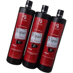 Repair active passo 1 Shampoo S.O.S. Treatment Composto de omega active 3d da proteina da cacau maçã + proteina da soja. Indicação: para cabelos rebeldes, indisciplinados e desalinhados. Resultado: cabelos lisos protegidos contra a umidade, redução de frizz e brilho3d. O shampoo repair active foi desenvolvido com uma poderosa e exclusiva fórmula que combina proteina da soja, responsável pelo selamento das cutículas abertas e danificadas possui poderosa ação hidratante, amaciante e nutritiva proporcionada pela de cacau, aliada a ativos com propriedade de proteção e restauração. É um sistema inovador que cria uma superfície suave e sedosa sobre os cabelos, mantendo as fibras capilares e fios rebeldes mais alinhados, brilhantes e disciplinados. Promove uma limpeza suave do couro cabeludo para o inicio do processo de alinhamento dos fios e alisamento da textura. Para ter cabelos ainda mais lisos e disciplinados, utilize outros produtos da linha cavier cosmeticos. Modo de usar: com os cabelos úmidos, aplique o shampoo repair active massageie até formar espuma abundante enxague e repita a operação. Em seguida aplique o reconstrutor repair active. === Repair active passo 2 Reconstrutor S.O.S. Treatment Elimina o frizz. Amaciante e ultra hidratante. Sem adição de corantes, possui ação pós progressiva, pos quimica indicação: cabelos transformados quimicamente resultado: cria um filme protetor anti umidade. Proporciona brilho e maciez de longa duração. O reconstrutor repair active foi desenvolvido a partir de um complexo reconstrutor. queratina, creatina, de cacau e óleo de abacate . Possui filtro solar e silicones especiais auxilia na reconstrução dos fios com aspecto poroso e quebradiço, reduzindo as pontas duplas, eliminando o frizz e revestindo a fibra com um escudo anti umidade de longa duração. Devolve o aspecto natural, promove maciez e brilho 3d aos cabelos. Modo de usar: aplique nos cabelos úmidos e higienizados uma pequena quantidade do comprimento as pontas. Penteie não enxágue . Se desejar, em seguida, inicie processo de escova ou prancha. === Repair active passo 3 Mascara S.O.S. Treatment Produto cosmético. Mascara condicionante repair active é o terceiro passo do processo da escova progressiva e outras químicas de transformação. Sua fórmula sem sal e com ph baixo, nutre e hidrata profundamente os cabelos, uniformizando estrutura cuticular e mantendo o efeito liso da escova progressiva por muito mais tempo. Desenvolvida especialmente com omegaactive 3d da proteínada de cacau e nutrientes vitais para a restruturação completa dos cabelos alisados, escovados, fragilizados por tinturas, relaxamentos e outros processo químicos. Age diretamente na fibra capilar, devolvendo aos fios brilho intenso e textura suave e macia, prolonga o efeito liso, tratando completamente os fios. Modo de usar: deixe o cabelo voltar à temperatura ambiente. Enxágue bem com água em abundância. Aplique a máscara condicionante repair active, massagens intensivamente e aguarde 3 minutos. Enxágue. Finalize como desejar.