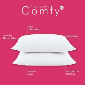 Travesseiro Comfy Suporte Baixo, produto Extremamente Macio, confeccionado em Tecido Micropercal 200 Fios - 100% Poliéster, ;com Enchimento de Fibra Siliconizada 450 Gramas.