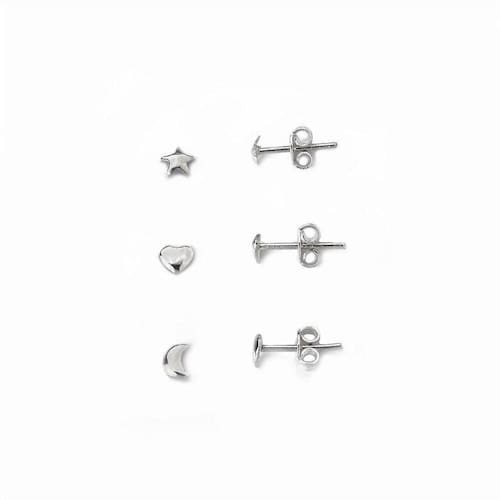 Kit Trio Brincos Estrela, Lua e coração Prata 925 -