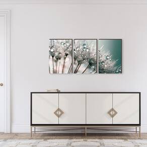 Kit trio quadros decorativo flores dente de leão em zoom Uma parede branca, sem vida e sem graça pode ser completamente modificada em poucos segundos. Como A gente te explica: