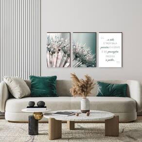 Kit trio quadros decorativo flores dente de leão + frase Uma parede branca, sem vida e sem graça pode ser completamente modificada em poucos segundos. Como A gente te explica: Com os nossos quadros decorativos a sua casa vai ganhar personalidade, identidade e beleza. - - - Box de madeira: nossos quadros são todos feitos em mdf. Eles possuem 3cm de profundidade alto relevo , o que garante destaque em qualquer parede. Cubra o que quiser: essa profundidade permite que você cubra caixas de luz, buracos ou imperfeições da sua parede. Deixe à vista só o que você deseja Feito no brasil: nossa fabricação é própria e passa por um minucioso controle de qualidade. Alta definição: todos os quadros são produzidos com imagens em altíssima definição e ótimo acabamento. Possuem a qualidade que a sua casa merece Cor de verdade: seguimos padrões rígidos de qualidade. Ainda assim pode haver uma pequena diferença na percepção das cores entre a impressão e o que você vê no seu monitor . Isso se dá por conta da configuração da sua tela de computador ou celular. Mas, fique tranquilo a . O resultado é sempre incrível e a qualidade é garantida Fácil de fixar: esqueça a briga com os pregos e parafusos para deixar seu quadro retinho Comprando hoje você ganha nosso kit instalação Dispensa vidro/fácil de limpar: nosso modelo dispensa o uso de vidro ou molduras. Para limpar, basta um pano seco ou espanador. Satisfação garantida: não gostou do produto Não tem problema, nós devolvemos o seu dinheiro - - - Nossa equipe está só esperando o seu ok para enviar essa maravilha para a sua casa. E aí, vamos transformar sua parede juntos Marca: Meu Rodapé