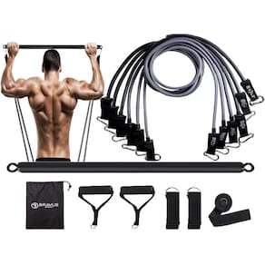 Kit tubing extreme pro 95kg com barra de exercício bravus Cor: preto Tamanho: m Gênero: unissex Kit tubing extreme pro 95kg com barra de exercício bravus Chegou a hora de aumentar a carga do seu treino e ultrapassar todos os limites com o novo kit tubing extreme pro 95kg com barra de exercício são 6 elásticos tubings com diferentes resistências totalizando 95 quilos de carga o novo tubing extreme bravus vem com 13 peças e se adapta a diferentes níveis de treino o nível iniciante pode usar cargas mais leves, entre 4,5kg e 9,1 kg e ir avançando para o intermediário, até chegar no nível avançado, com elásticos de 13,7kg, 18,2kg, 22,7kg e 27kgO kit inclui: 1 elástico cinza super claro de 4,5 kg de resistência 1 elástico cinza claro de 9,1 kg de resistência 1 elástico cinza médio de 13,7 kg de resistência 1 elástico cinza escuro de 18,2kg de resistência 1 elástico preto de 22,7 kg de resistência 1 elástico preto intenso de 27 kg de resistência 1 barra de exercício feita em aço de alta qualidade 2 alças de mão revestidas de espuma 2 tiras para tornozelo 1 âncora para colocar na porta 1 bolsa em nylon O kit tubing extreme 95 kg com barra de exercícios bravus pro vem com acabamento reforçado, seus elásticos são conectados em tecido de alta resistência, com marcação do peso correspondente em kg. Seus ganchos são largos e resistentes, por isso suportam a carga máxima de 95kg. Além disso, ele acompanha a exclusiva barra de exercícios bravus, que vai turbinar seu treino por completo A barra de exercícios bravus é feita em aço de alta qualidade, tem 1,20m de comprimento total e suporta até 150 kg de carga. A barra de exercício da bravus tem um encaixe que permite que ela seja conectada ou desconectada facilmente. Conecte 1 ou até 6 elásticos extensores do seu kit tubing extreme bravus nas extremidades da sua barra e aumente o número de exercícios que podem ser executados com seu equipamento. Treine com inúmeras combinações de carga e mantenha seu treino em evolução. Você pode começar com uma carga menor e ir avançando progressivamente. As cargas geradas pelos elásticos podem variar entre 4,5 kg à 95 kg e você ainda tem a possibilidade de treinar com a barra de exercício bravus, as alças de mão ou de tornozelo e ainda usar a âncora de porta, criando assim inúmeras possibilidades de treinoConquiste mais força, resistência e definição muscular com o kit tubing extreme e barra de exercício bravus Diferencial: 1. Elástico tubing antipressão de látex de alta qualidade em degradê cinza 2. Mosquetões largos em aço resistente3. Tiras em tecido reforçado com costura firme4. Marcação da carga em kg no tecido5. 6 resistências diferentes, incluindo a nova carga de 27kg 6. Barra de exercício feita em aço reforçado6. Carga máxima de 95 quilos Cada elástico tem 1,20 m de comprimento com garras em metal. É possível realizar os exercícios usando 1 ou até 6 elásticos ao mesmo tempo, criando assim, mais de 50 níveis diferentes de resistência. O novo kit tubing extreme pro 95kg é tão completo que é possível fazer exercícios para trabalhar diversos grupos musculares - tanto superiores, como: braços, peitoral e costas, quanto inferiores: glúteos, coxas, pernas e panturrilhas. Finalidade: ganho de força, resistência, aumento de massa magra, tonificação muscular e melhora de condicionamento físico