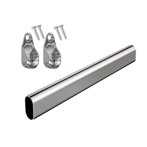 Kit Tubo Cabideiro Oval Oblongo Para Guarda-Roupa Cromado com Suportes